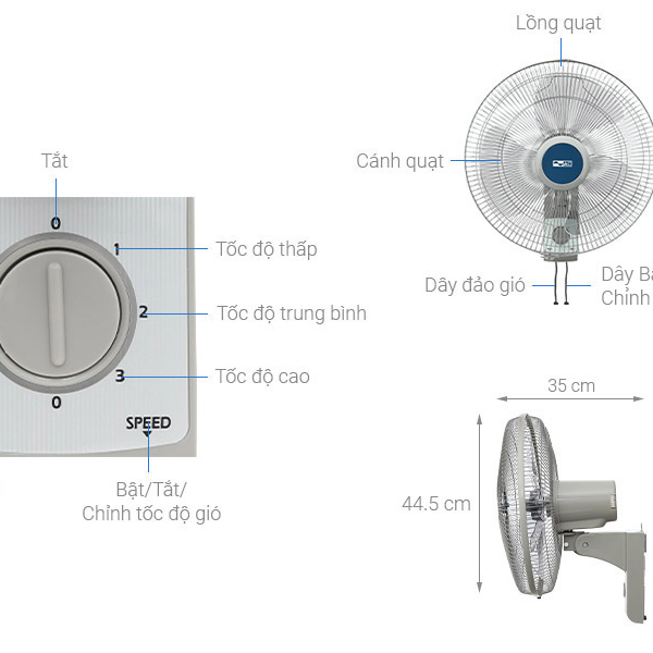 | Loại quạt | Quạt treo tường |